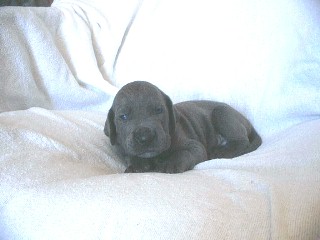 This is me, 8 weeks old, going home with my new family! I weighed 16 lbs 7 oz |